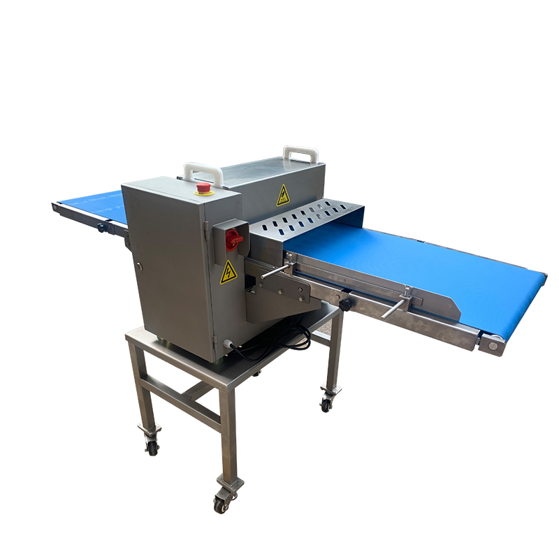 機身配備了調節(jié)厚度切割的旋轉按鈕,通過推桿進行無級調速用來滿足不同規(guī)格切割的要求,臘肉切條機采用了預壓力設計能夠保證切割過程中塊狀大小的均勻,在單刃進行切割的時候肉類推桿會做步進運動,能夠保證尺規(guī)格的合適。